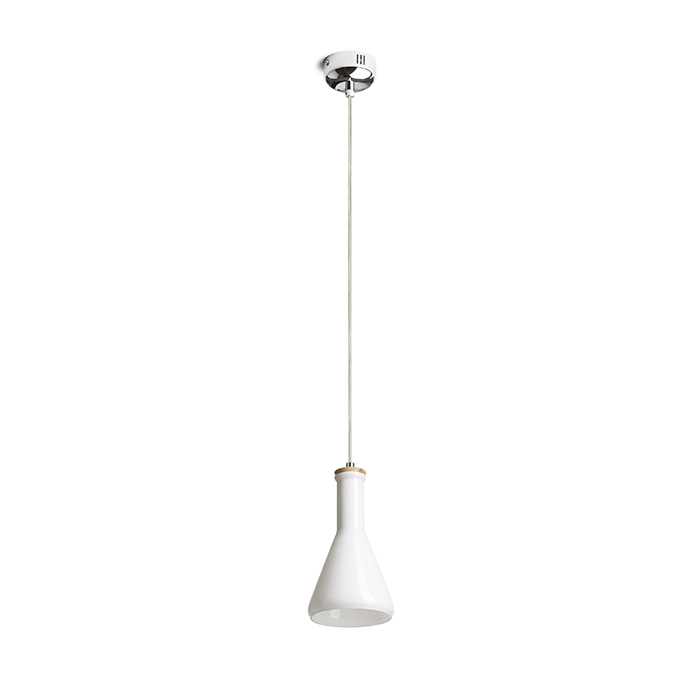 Termék vázlat – LEDRA PULIRE CON függőlámpa opálüveg/fa/króm 230V LED E14 6W