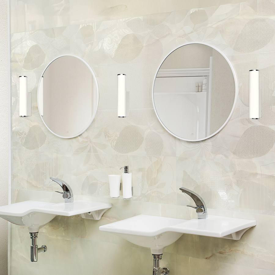 Henger alakú LED fali lámpa opál burkolattal, króm alapzaton. Nedves környezetbe is alkalmas.