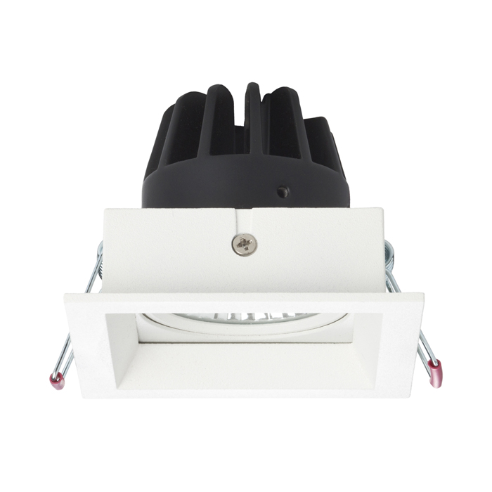 Süllyesztett nem billenthető lámpa 5,4 W LED diódával, átlátszó üveg borítással.