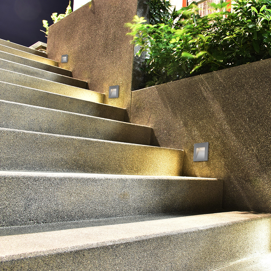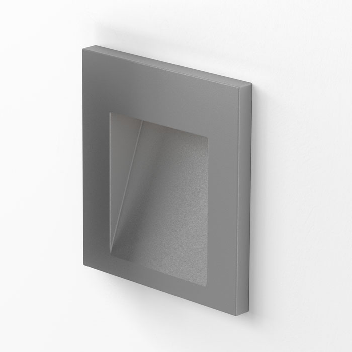 Szögletes, süllyesztett lámpa, amely egyaránt alkalmas beltéri és kültéri használatra, három színben, szerelődobozzal együtt. Telepítése fényforrással lefelé.