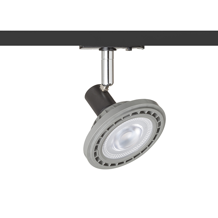Lámpa sínrendszerre. A lámpa GU10 foglalattal van felszerelve. A fényforrás 111 mm vagy 51 mm átmérővel használható. A termék méretei fényforrás nélkül vannak megadva.