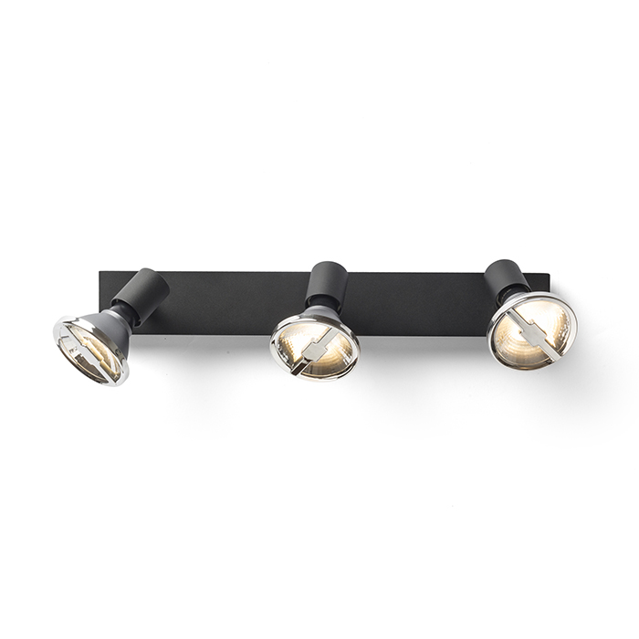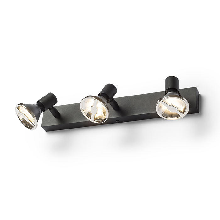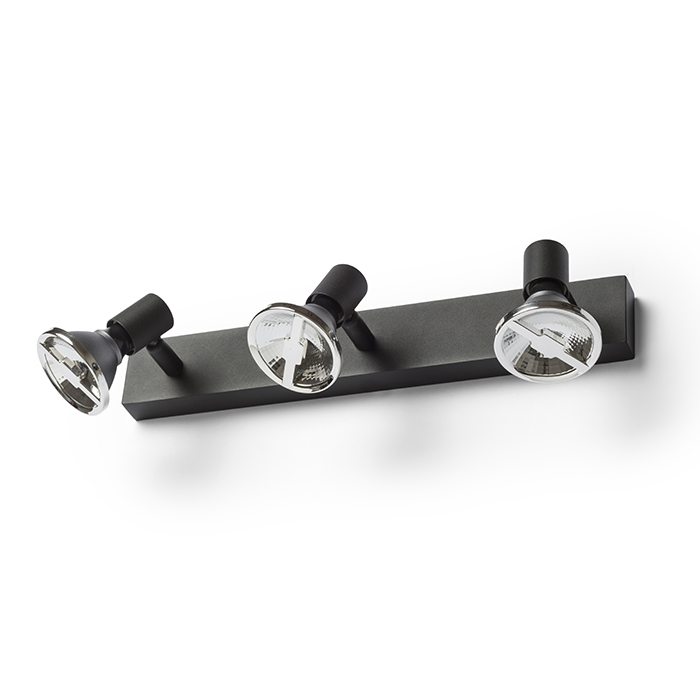 Egyszerű, hármas fém spotlámpa, falba vagy mennyezetbe való könnyű elhelyezéshez. GU10 design reflektoros izzóhoz.