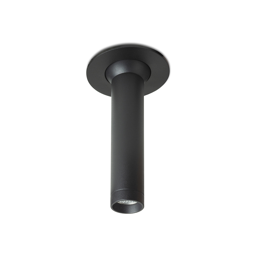 Diszkrét csuklós LED beépíthetõ lámpa amely részben gipszkarton álmennyezetbe van süllyesztve.