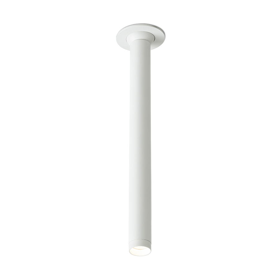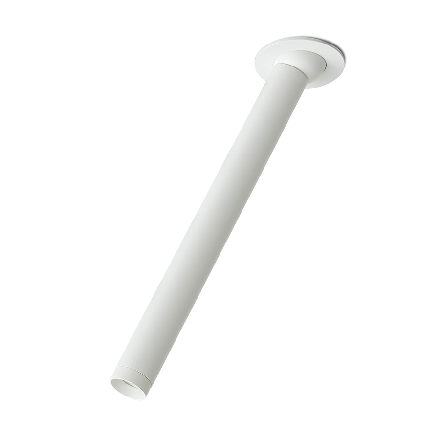 Diszkrét csuklós LED beépíthetõ lámpa amely részben gipszkarton álmennyezetbe van süllyesztve.