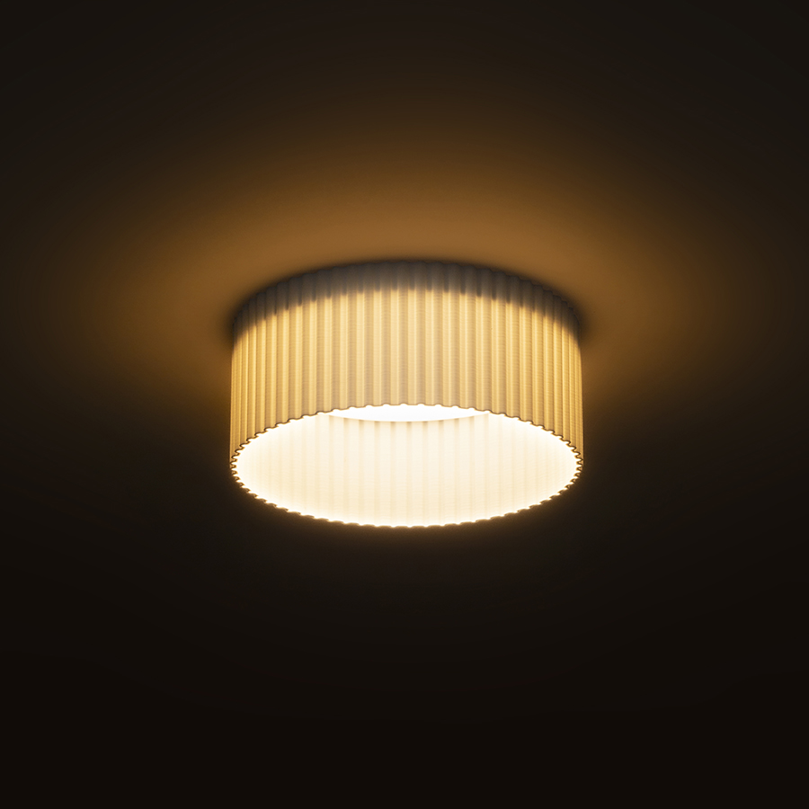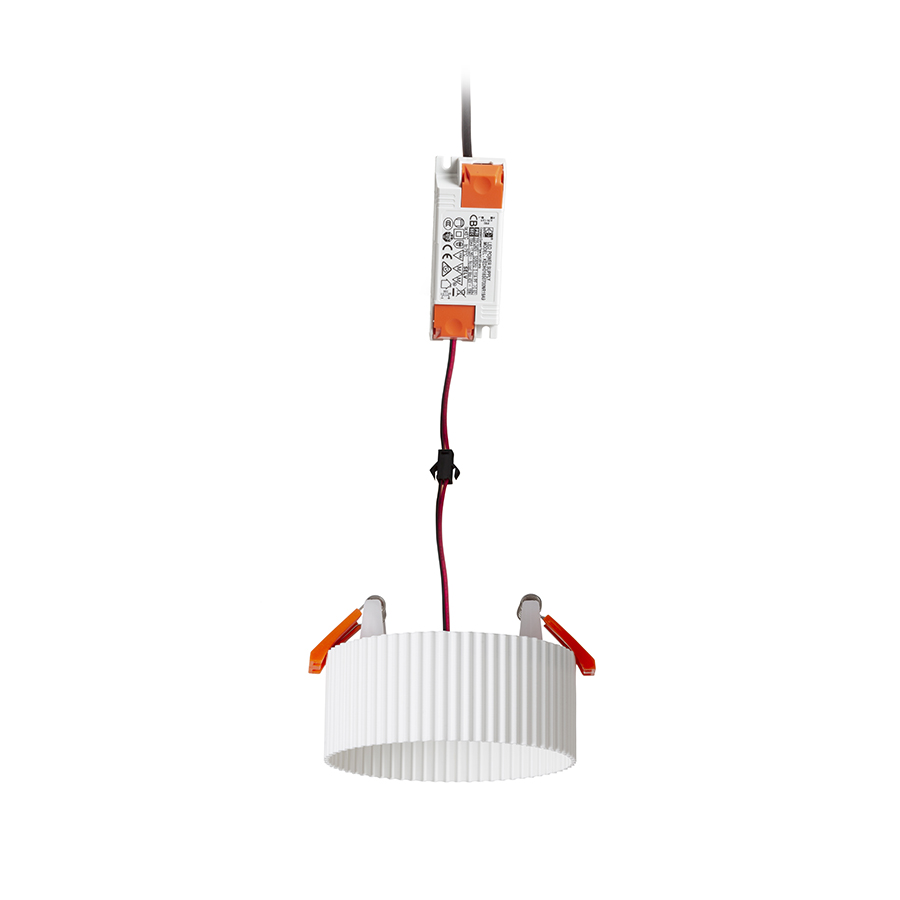 Alacsony beépítésû vakolt mennyezetbe szánt LED lámpa dekoratív lámpabúrával. Az búrát 3D nyomtatással készítették. Környezetbarát PLA anyagból készült mely teljesen lebomlik. A szerelõlyuk mérete a csúsztatható rögzítõ rugókkal állítható. A lámpa kényelmesen kicserélhetõ a meglévõ halogén lámpák helyett anélkül hogy módosítani kellene a szerelõlyukakat.