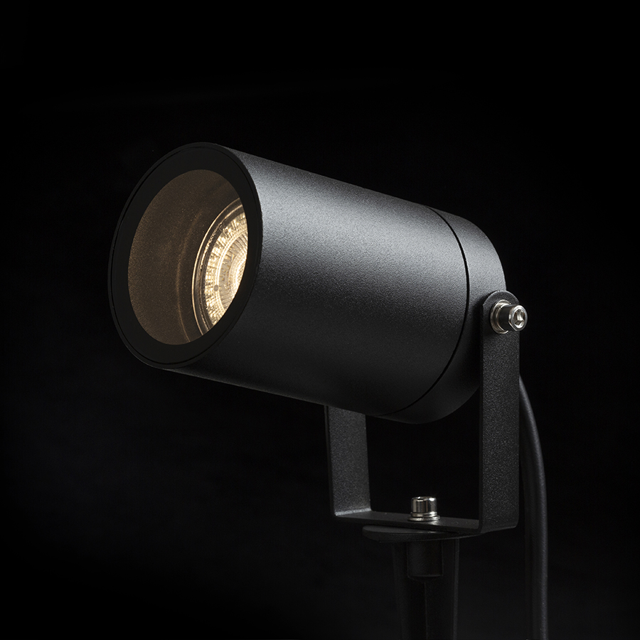 Kültéri alumínium reflektor leszúrótüskével GU10 foglalatú LED izzóhoz. 1 méter hosszú tápkábellel. A kábel nincs végzõdtetve!