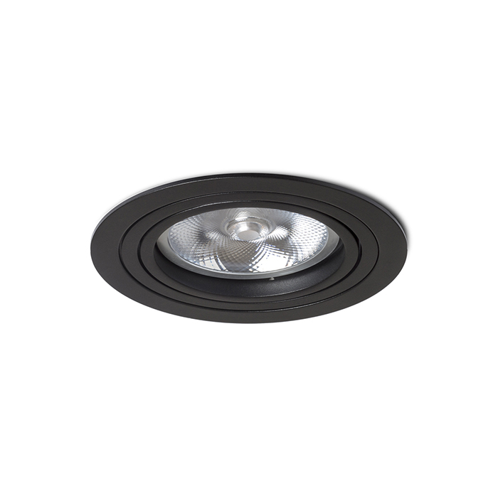 Kör alakú süllyeszthetõ alumínium lámpa AR111-es izzóhoz dönthetõ kialakítással.