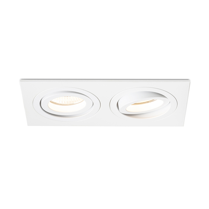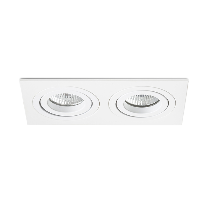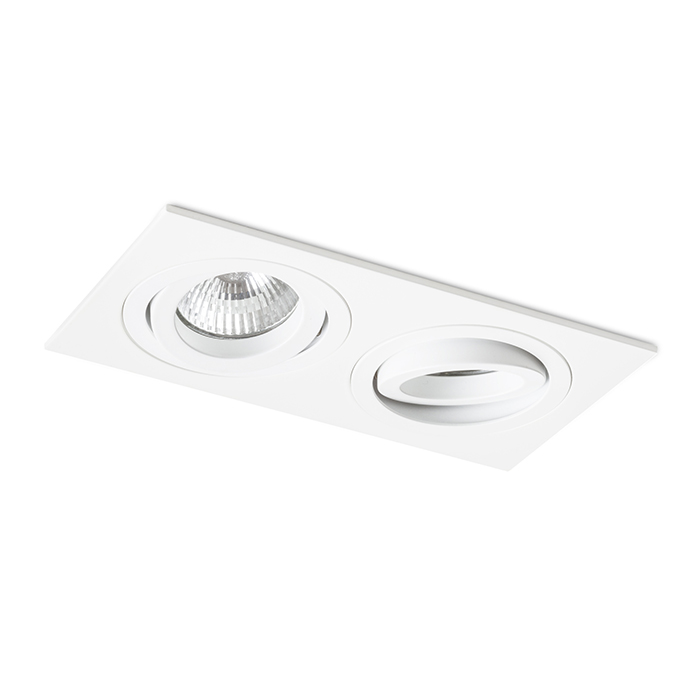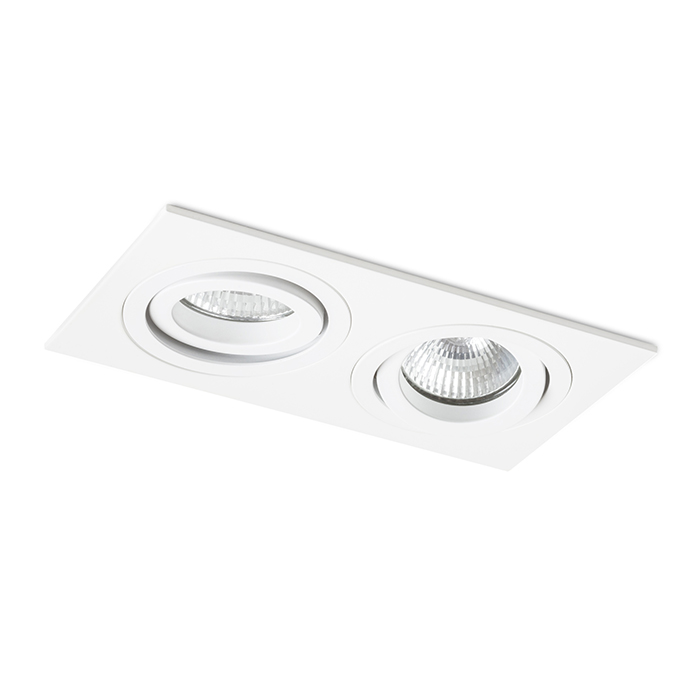 Téglalap alakú dupla süllyeszthetõ lámpa alumínium kivitelben natúr felületkezeléssel vagy festett változatban. GU10 foglalatú izzókhoz dönthetõ kialakítással.