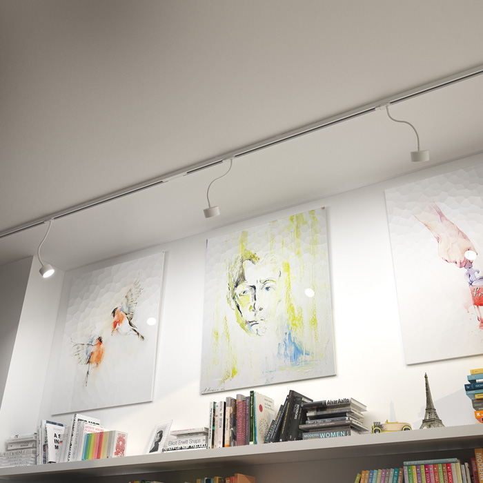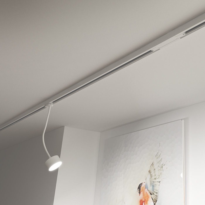 Dönthetõ lámpa adapterrel háromáramkörû sínre hajlítható nyakon három színváltozatban. GX53 foglalatú energiatakarékos LED lámpákhoz.