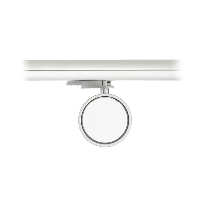Alumínium dönthetõ lámpa adapterrel háromáramkörös sínre három színben. A lámpa energiatakarékos LED fényforrásokhoz tervezték GX53 foglalattal.
