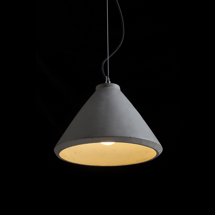 Masszív beton függõlámpa kábelcsatlakozással szabadon lógó kábellel E27 izzóhoz.