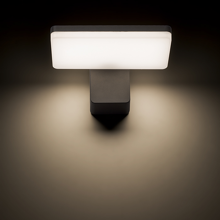 Kültéri LED fali lámpa lefelé irányuló világítással öntött alumíniumból. Opál alsó borítás.