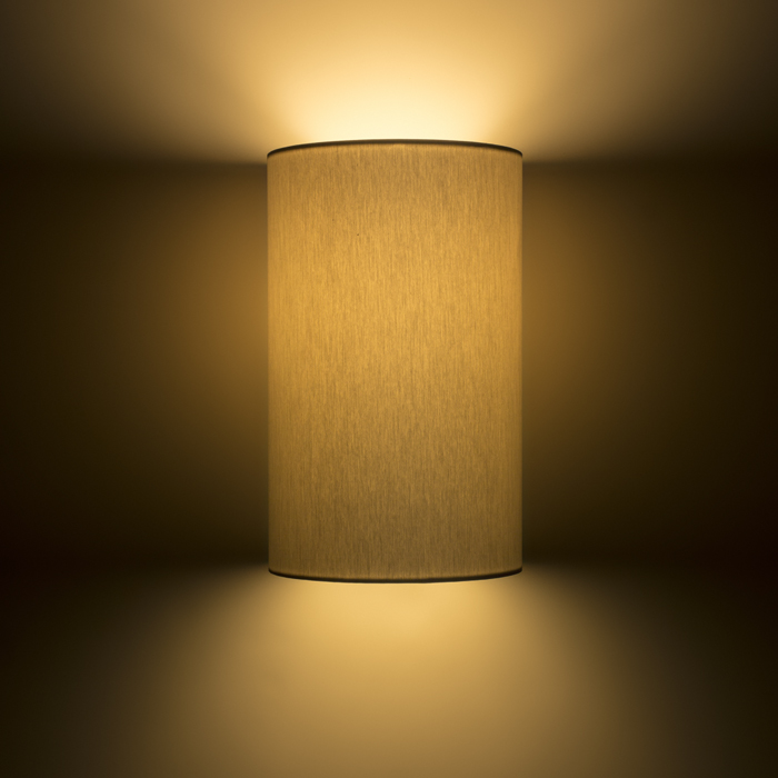 Fali lámpa textil búrával.