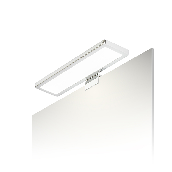 Téglalap alakú fém LED lámpa króm kivitelben FEL/LE világítással alkalmas fürdõszobai szekrényekhez és polcokhoz.