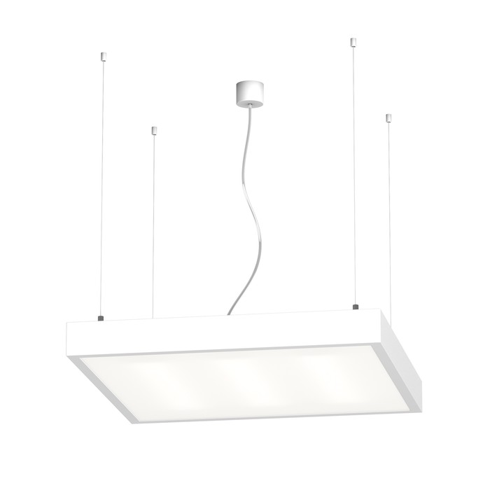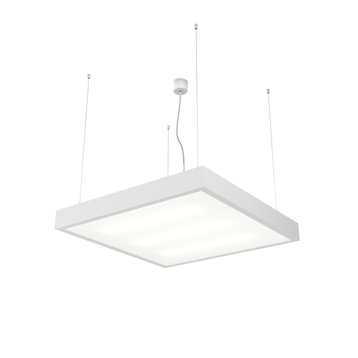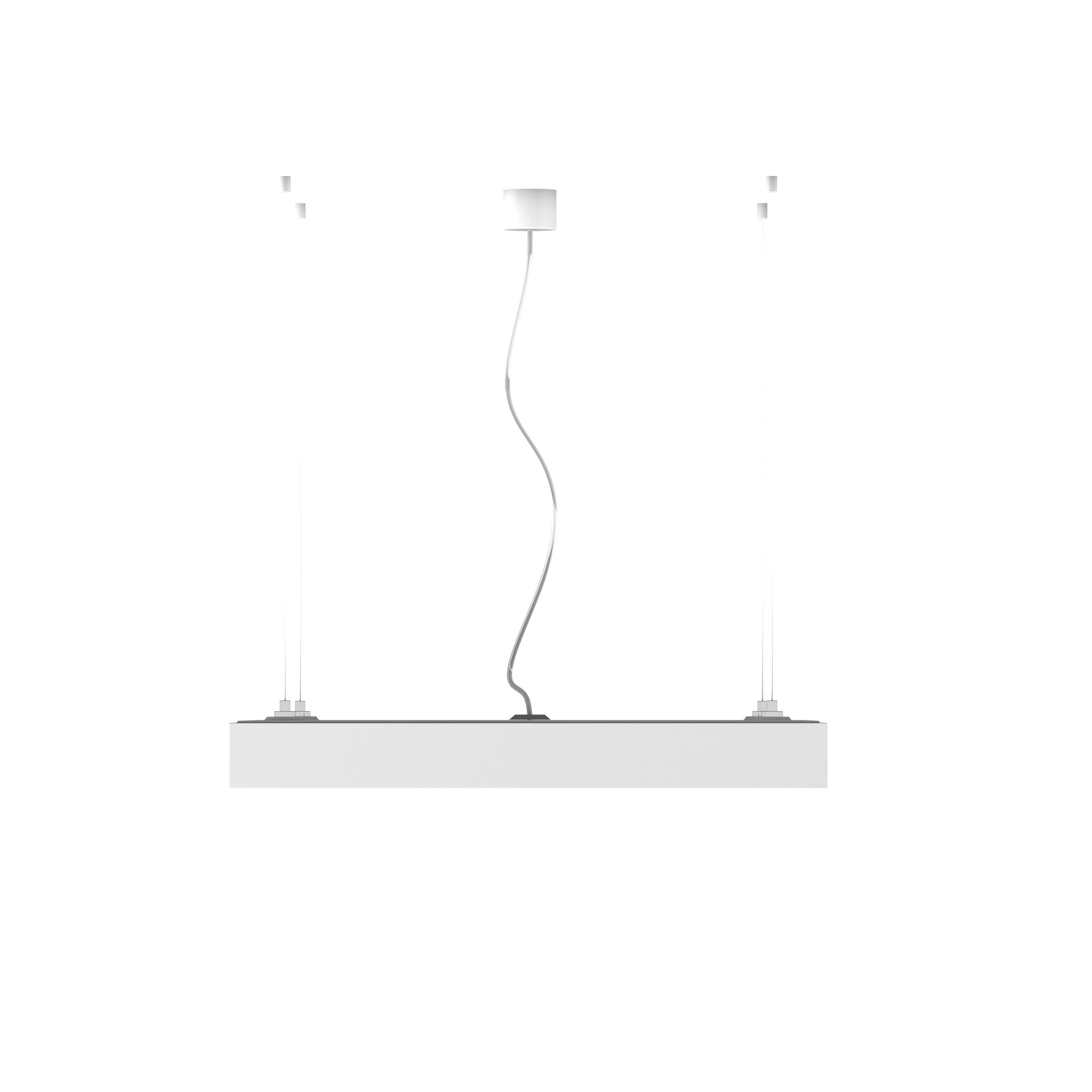 Négyzet alakú alumínium profilú fénycsöves függõlámpa elegáns kialakítással. Elérhetõ natúr alumínium vagy fehérre lakkozott változatban. Opál PMMA diffúzorral lefelé történõ világítással háromeres átlátszó kábellel.