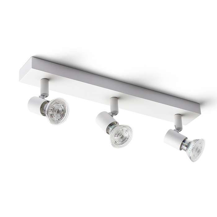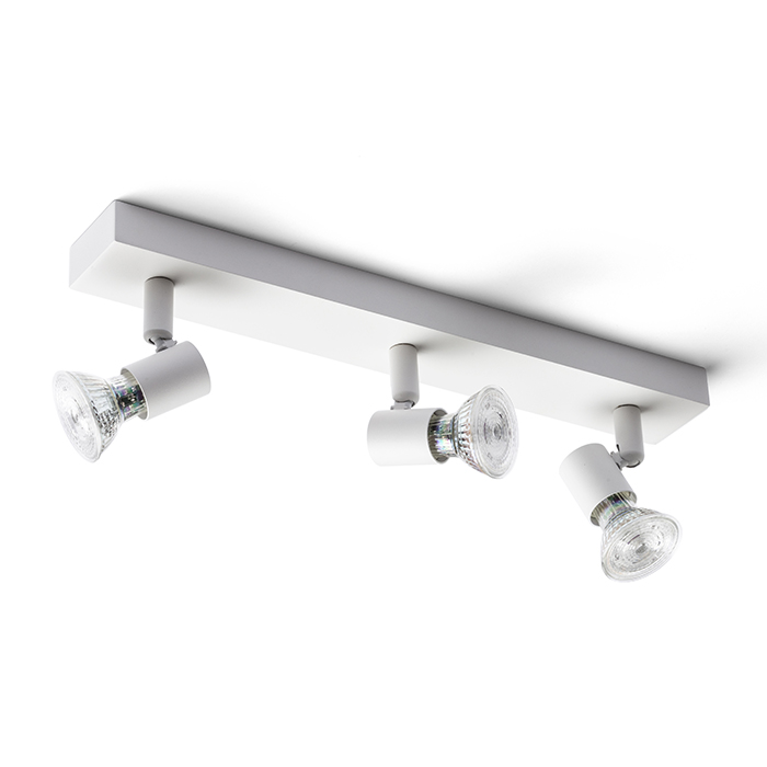 Egyszerû hármas fém spotlámpa falba vagy mennyezetbe való könnyû elhelyezéshez. GU10 design reflektoros izzóhoz.