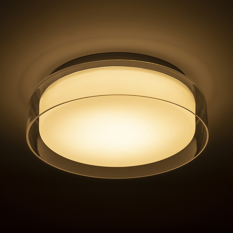LED mennyezeti lámpa belsõ opál és külsõ átlátszó üveg kombinációjában króm alapon. Párás környezethez alkalmas.