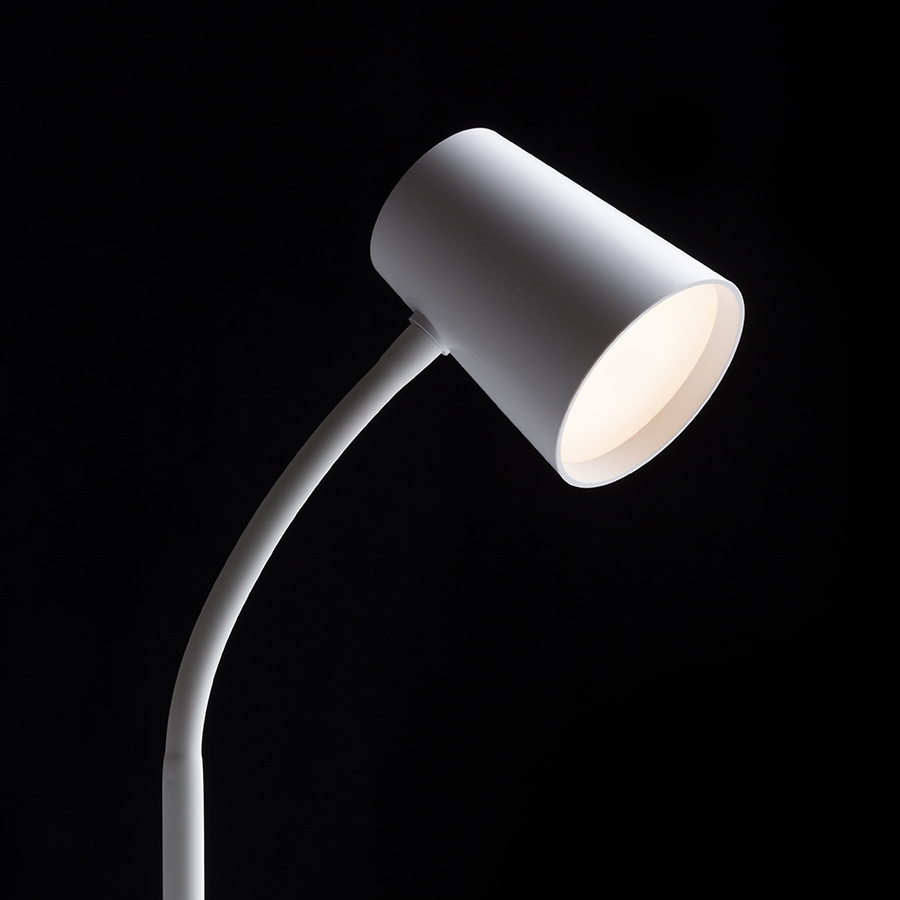Asztali LED lámpa kúpos búrával és hajlítható karral. A vezérlés a lámpa talapzatán található. Háromfokozatú fényerõszabályzás.