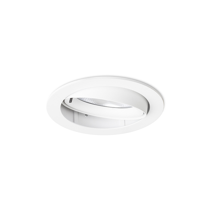 Kör alakú süllyeszthetõ lámpa fehérre festett alumínium kivitelben dönthetõ kialakítással AR111-es izzóhoz.